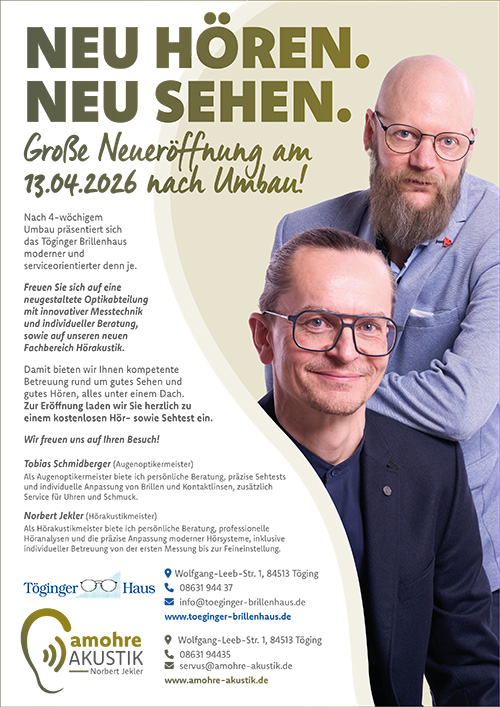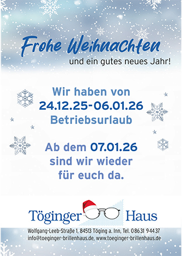 Wir sind Ihr Optiker Meisterbetrieb und Spezialist für Brillen, Sonnenbrillen, Kontaktlinsen, Uhren und Schmuck in Töging.